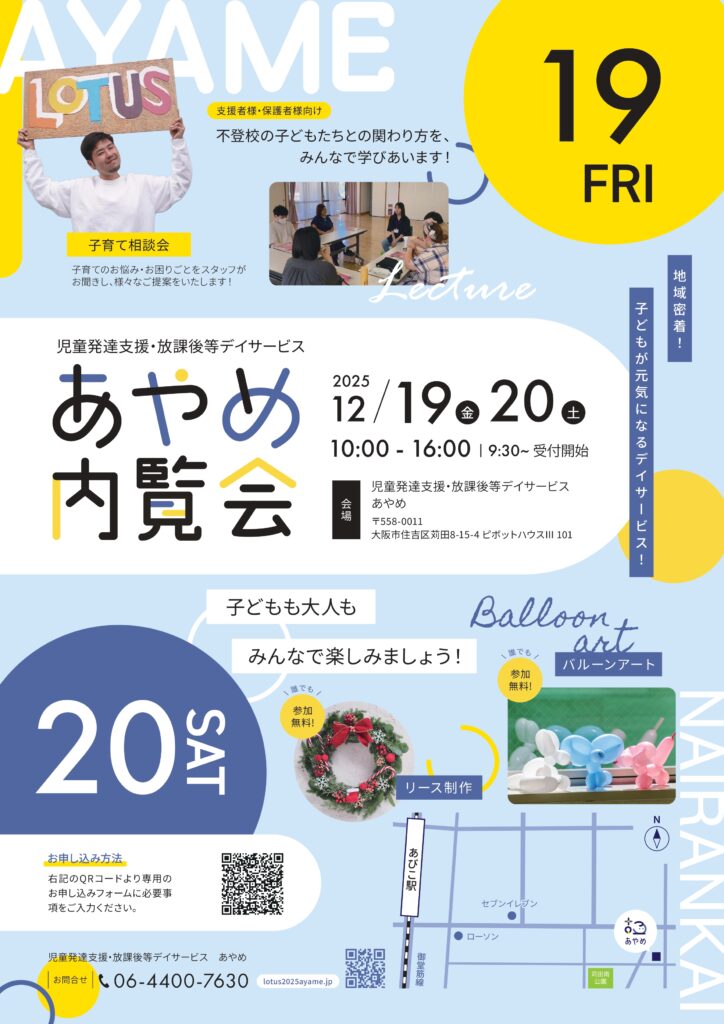 児童発達支援・放課後等デイサービス「あやめ」の内覧会を下記の日程で実施いたします。